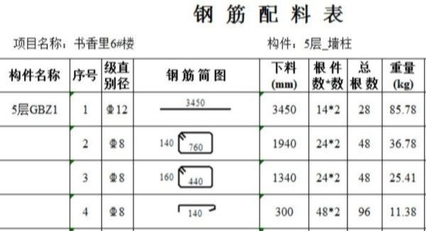 1、料单表示方式混乱、不规范、单位混乱,有用cm、mm,无间距等绑扎要求,搭接锚固长度及说明备注,下料长度伸长缩扣除不到位。以下为一个标准格式可供参考。