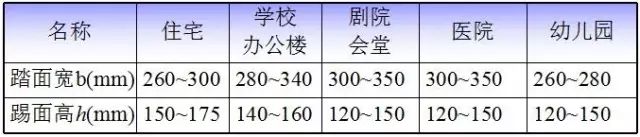 在建筑工程中,踏面宽度一般为260~320mm,踢面高度一般为140~175mm。