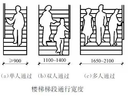 为了保证通行顺畅和搬运家具设备的方便,楼梯平台的宽度应不小于楼梯段的宽度。