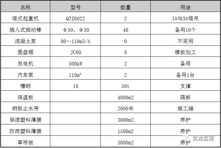 (2)审核施工组织设计和专项施工方案,重点检查大体积混凝土在材料供应,混凝土浇捣,测温及养护等方面的专项技术措施。一是重点审核方案对大体积混凝土浇筑质量的技术保证和施工工艺是否科学,合理安排。二是检查了解施工单位对大体积混凝土施工安排计组织管理。应重点审核其方案是否包括了工程概况、地理位置、交通、为施工而增设的临时设施、现场浇筑安排、考察商品混凝土搅拌站资质及供应情况、输送泵位置设置、管路铺设合理否、搅拌车的进出方向、每台泵配置几台车,每小时每台泵供多少量、总的累计多少时间能完成总方量、浇筑流水方向、工艺设备的配置,如照明、排水泵、振捣器和通讯工具等。