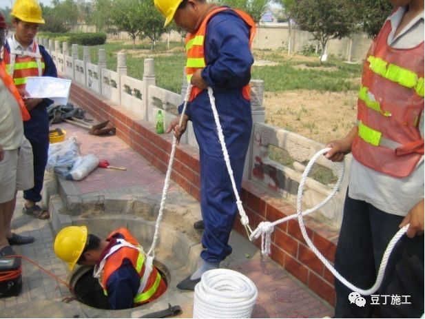 GB5958-2006第5.3.4条规定:当存在因缺氧而坠落的危险时,作业人员必须使用安全带(绳),并在适当位置可靠地安装必要的安全绳网设备。因此,要求进入有限空间作业人员必须配备五点式安全带和安全绳,将安全绳牢固设置在有限空间外,如发生中毒或窒息事故,可使伤者身体姿态保持竖直,便于及时施救。