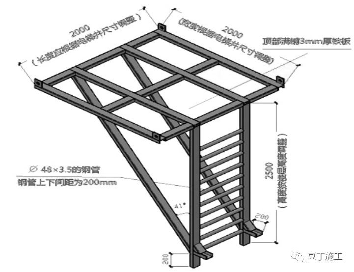 第十七条 电梯井操作平台须采用定型化钢平台,除自稳型钢平台外,必须采用14号及以上工字钢做插杠,支撑点严禁少于四个。