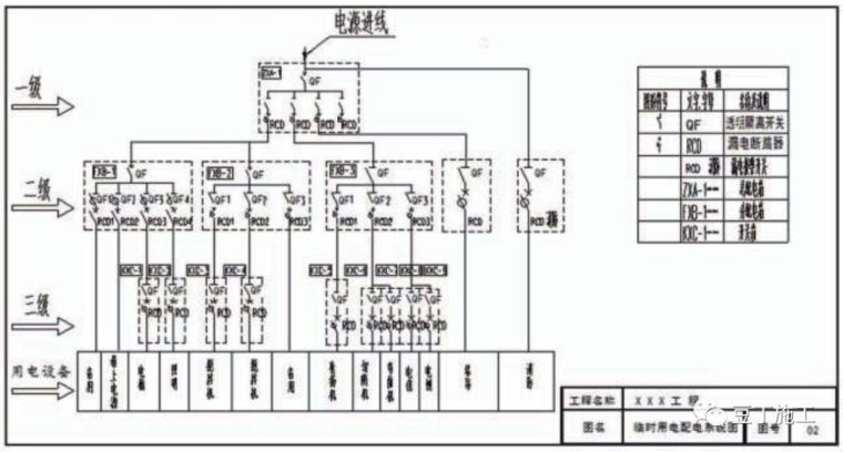 三级配电主要指:现场总配电箱、分配电箱、开关箱,其中分配电箱可以多层次,当工程规模较大时,也可以实行多级(三级以上)配电;逐级漏电保护主要指:现场总配电箱、分配电箱、开关箱每级箱内均设漏电保护器。施工现场必须实行TN-S系统,严禁使用可调式漏电开关。