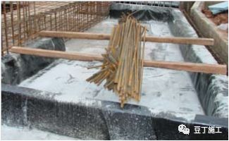 b.绑扎钢筋时,钢筋底下采用混凝土垫块保护。绑扎钢筋过程中,如需移动钢筋而使用撬棍时,应在其下设木垫临时保护,以免破坏防水卷材;