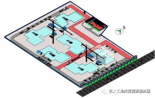高支模架体支撑体系落在100mm厚C15混凝土垫层上,要求底部回填土压实系数满足图纸要求且回填土分层夯实,承载力在120kpa以上。1.2 高支模施工重点和难点分析及应对措施1.2.1 高支模区域面层高多、构件种类多。解决措施:施工方案编制须全面、详细,验算准确,施工方案必须通过专家论证后实施。1.2.2 现场技术人员、操作工人对方案掌握程度不足。解决措施:方案论证完毕后,首先要对技术人员进行详细的方案交底,另对操作工人进行直观、简单、明确的技术交底。1.2.3 施工过程中未按照交底进行施工,验收无法达到施工要求。解决措施:高支模施工过程中,施工技术人员须进行旁站监督,过程中及时纠正错误,保证施工完成后一次验收通过。1.2.4 使用材料无法满足方案要求,造成安全隐患。解决措施:所有高支模区域使用材料,包括钢管、扣件、顶丝、底座、脚手板、模板、木方等材料进场必须验收按照方案标准进行联合验收,验收合格后方可使用。1.3 施工平面设置A2#楼位于场区东北角,东临白塔二南街,在高支模施工阶段,在施工区域南侧设置钢筋加工棚及木工加工棚,四周设置满足汽车泵、罐车运行的临时道路,在A2#楼西北角配备一级箱以满足塔吊、加工区及施工过程中的合理用电,场区四周设置临水管线以满足模板湿润、混凝土养护的需求。