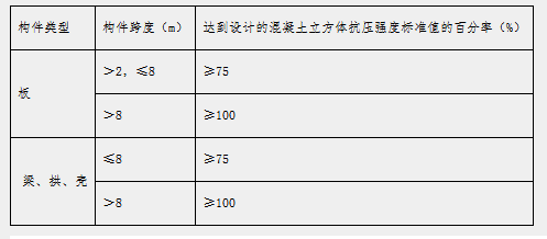 2.3.7 模板拆除本工程拆模主要针对高支模区段梁板,梁板拆模前应按要求委托同一部位留置的同条件试块确认抗压强度,当结果满足下表要求后可拆除。表2.3-1 模板拆模混凝土强度要求