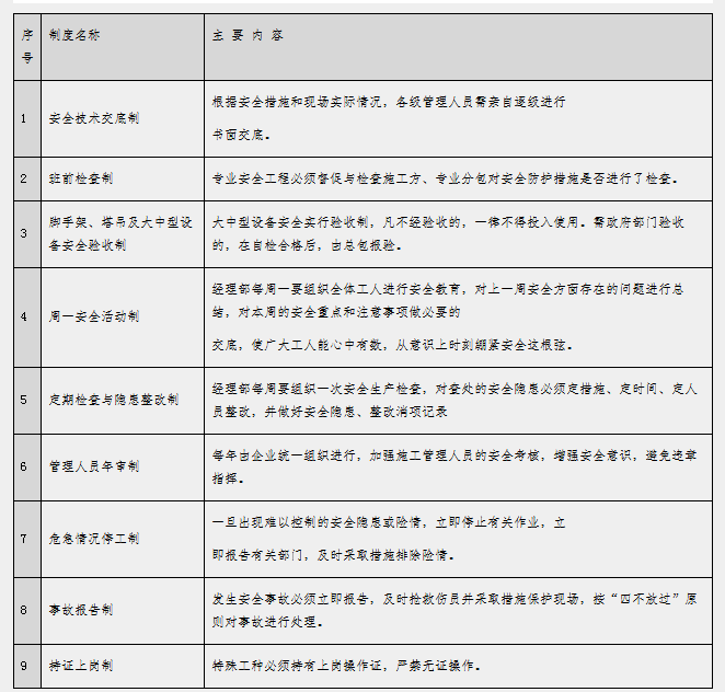 4.1 安全生产管理制度表4.1-1 安全生产管理制度