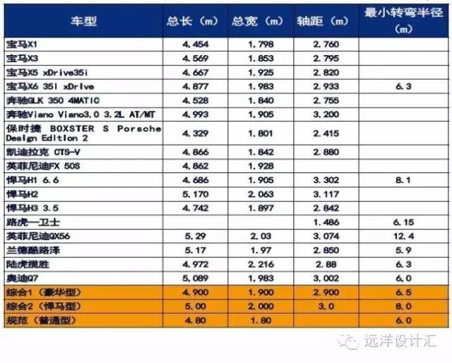 其中车辆本身尺寸随着车辆越来越豪华的趋势有所增大,对车位尺寸也有一定影响。根据对常用高档车型技术参数的统计,普通型车尺寸1800x4800mm,豪华型车辆尺寸1900x4900mm。