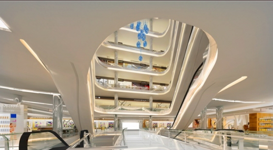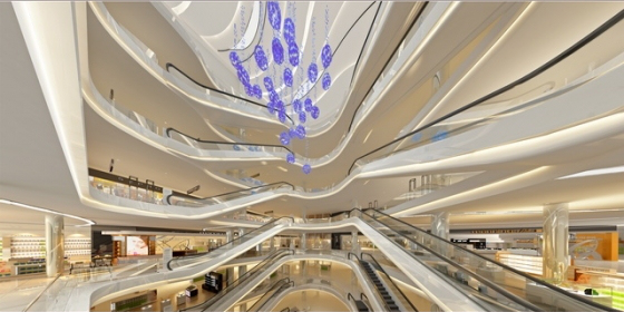 一般而言,商场的走道宽度是4米,中庭大概是9-12米,大的节庆广场中庭会大。层高一般是5.5米或者6米,净高是在3.5-4.5米。动线的节点设计是每100米都有一个停留点,原因是100米是人走了一段距离需要休息的节点,也是可能需要入口的位置。