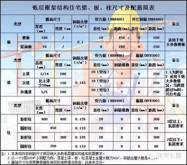 最后为了不让老百姓不被包工头忽悠,特奉上专业工程师制作的梁柱尺寸表和配筋表。