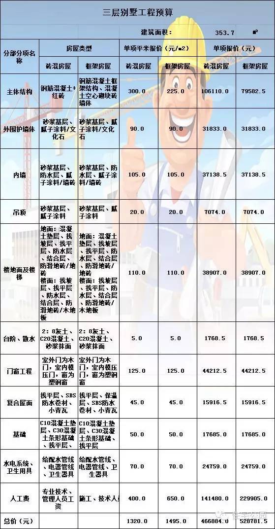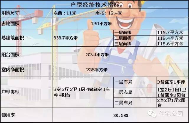 最后来看看这套户型的详细技术指标及大家最为关注的造价问题: