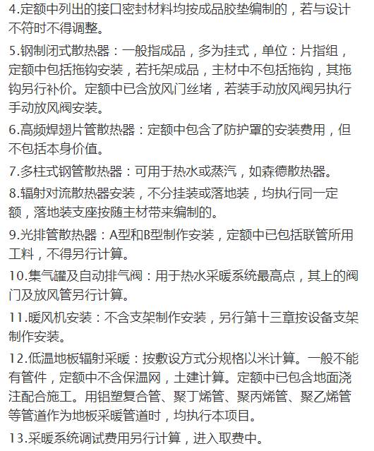 5. 采暖干管接立管时,当立管直线管段15m时,采用2个90。弯头,当直线管段15m时采用3个90。弯头。点击免费下载海量工程资料