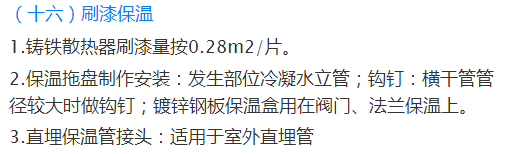 2.保温常规做法-给水:防结露保温,热水:保温,消防:不保温,冷冻水:连阀门都需保温,冷却水:按设计要求,未要求可以不作。一般吊顶里的管道均需保温。