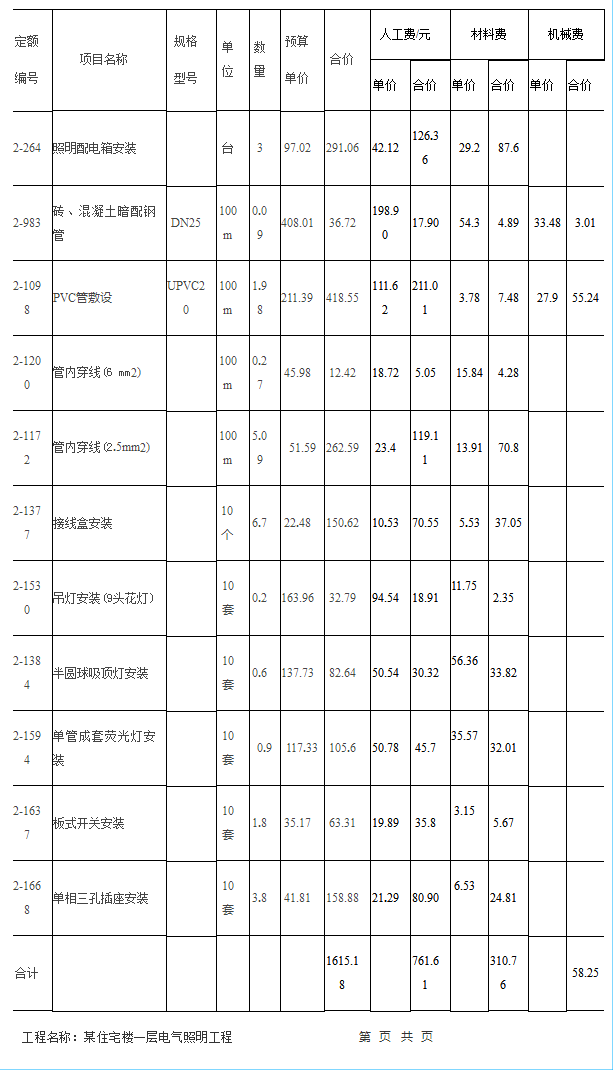 1、整理工程量、套定额,计算工程定额直接费(不含主材费用)