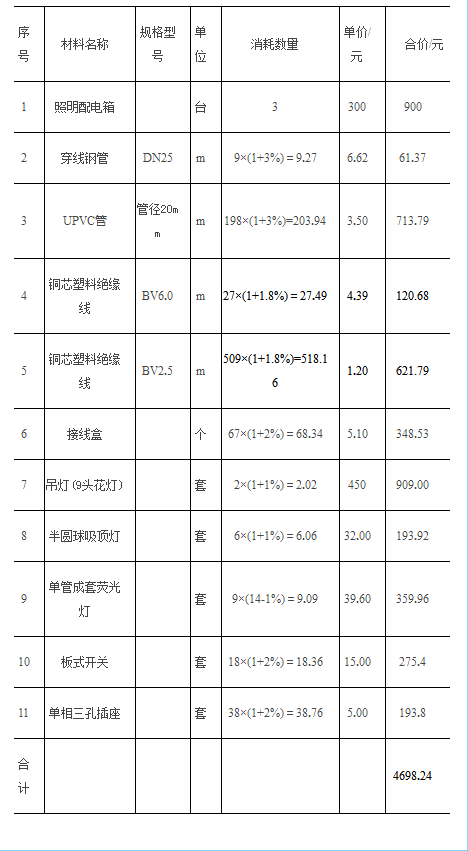 L1回路为照明回路,都为两根线,只有起居室6号吊灯开关水平至6号吊灯为3根线,所需长度为