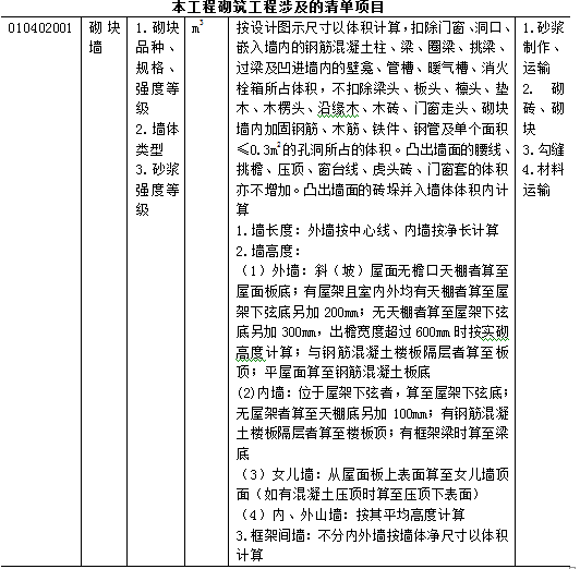 任务2:砌筑工程工程量清单编制