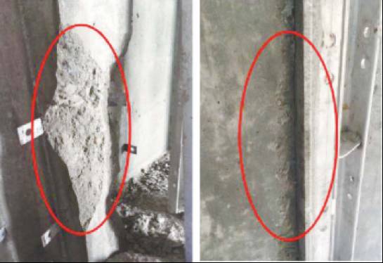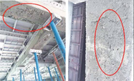 (2)高低跨和外墙、柱上下层错位,形成吊脚漏浆而造成烂根。