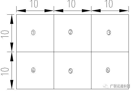 划分方格、填写方格编号。通常,以10-40m为一个方格的边长,地面高低起伏较大的一般选用10m、20m,高低起伏较小的则选用30、40m,边长越小,计算结果越精确。
