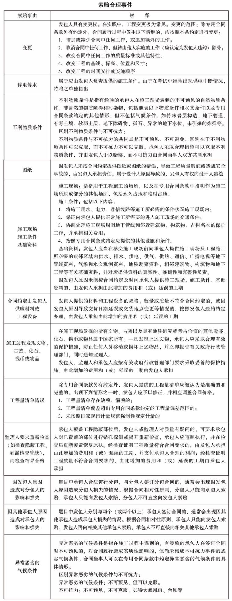 (6)承包人在停工期间按照发包人要求照管、清理和修复工程的费用由发包人承担。在考试中,读者需要明确的内容见下表。