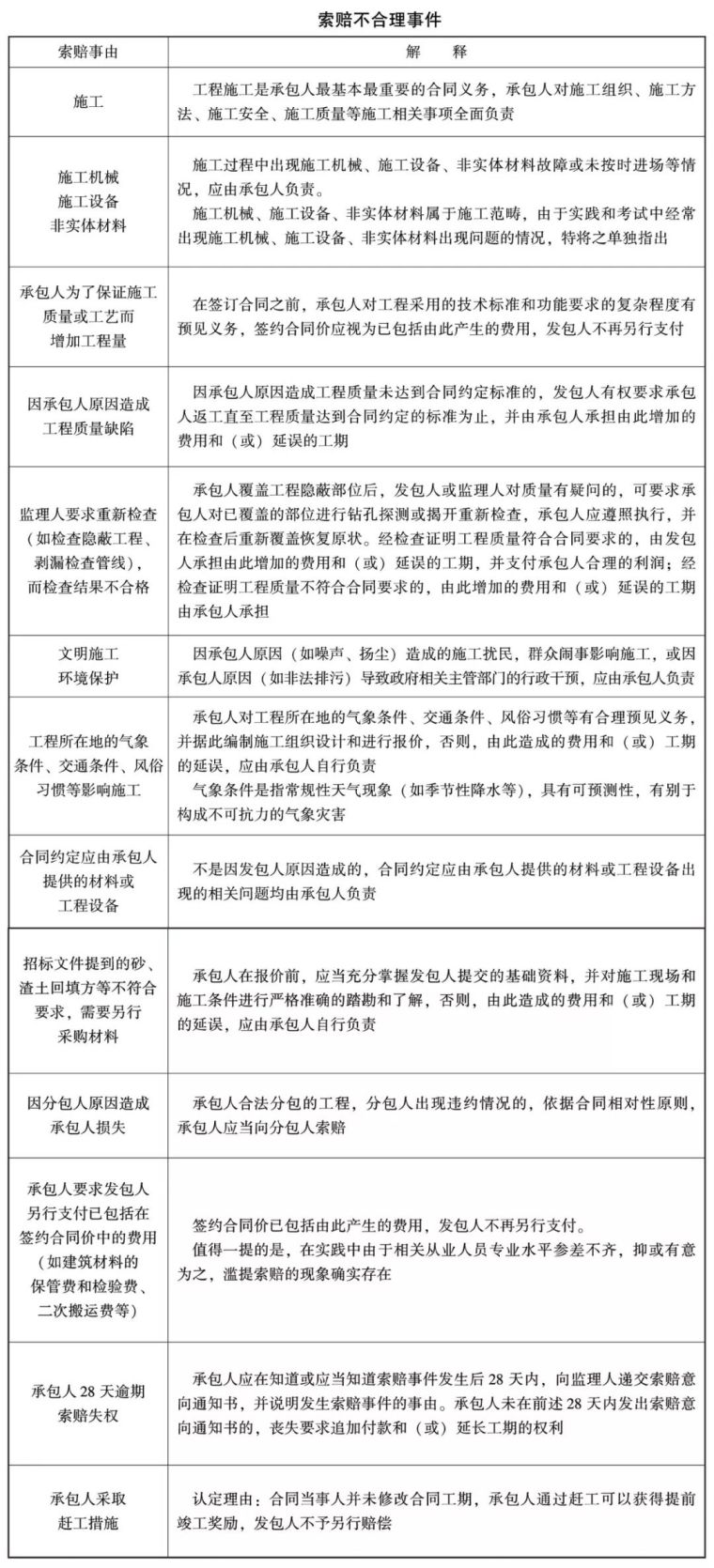 对于下表中所罗列的索赔事由,均认定为索赔不合理,发包人不承担由此增加的费用和(或)延误的工期。
