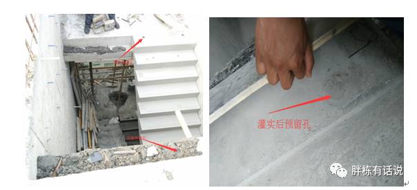 2、楼梯段(或踏步板)吊装时,先在休息板的支承面上浇水湿润并坐水泥浆一层,然后将楼梯段踏步面呈水平状态安装,使与支座接触严密。将楼梯段上部预留孔与支座预埋件对其后安装就位,方可卸钩,再按设计要求打灌浆料。