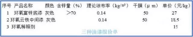 1*50m厚环氧富锌底漆 ----- 约0.25㎏/㎡。