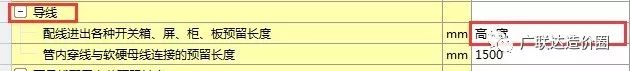 电线进入配电箱也要计算预留长度,通常的计算方式为配电箱半周长,即上图中显示的配电箱的高+宽,当然如果工程有特殊要求,比如有指定的预留长度,可直接在计算设置中输入对应的数值,则后续软件按照输入的数值计算预留长度。