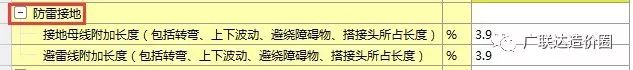 按照计算规则内置了防雷接地中的附加长度计算,绘制模型之后软件自动计算3.9%的附加长度。