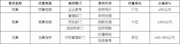 表1:全国园林绿化养护概算定额和预算、估算费用的区别