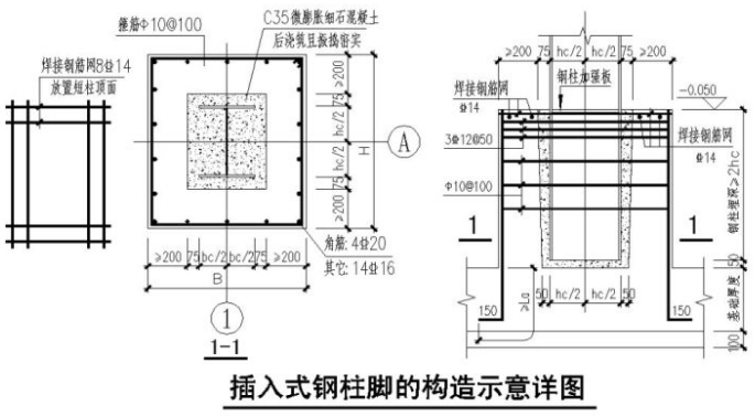 4.3、插入式柱脚一般构造要求及部分细部设计计算