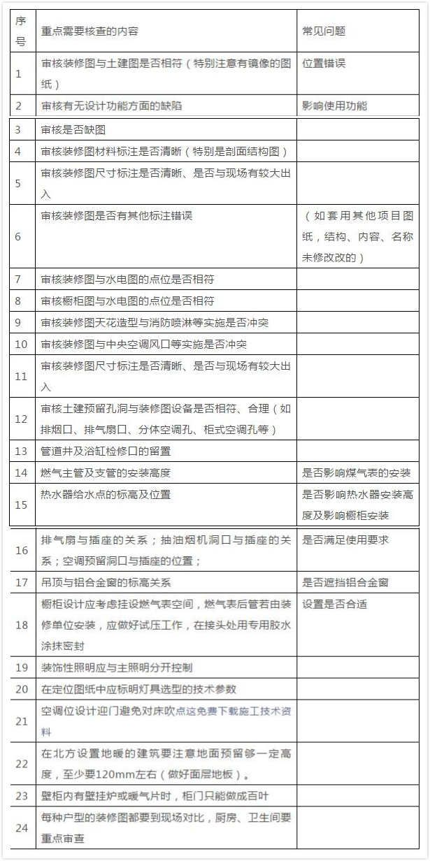 工程部、设计部必须对各专业图纸认真核查。目的是达到了解设计意图,熟悉施工图纸,发现其中可能存在的问题,以便在设计技术交底和图纸会审时提出,并加以解决,确保施工顺利。