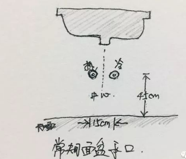 (1)水管左热右冷,并排平行间隔1 8cm,离地高度1.4m。