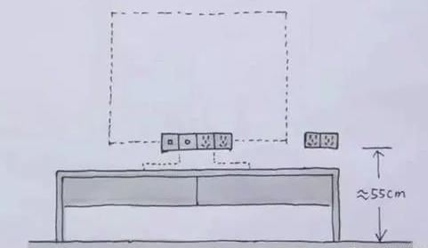 3、在电视柜下面插座300mm。电视柜上面插座600mm.再挂电视中央的插座1100mm。