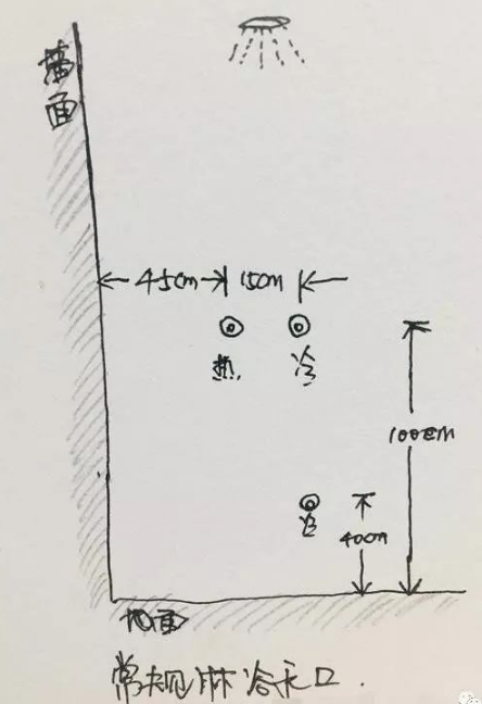 5. 花洒:确定花洒杆是可调还是不可调的,如果是不可调的一定要确定花洒杆的高度便于混水阀门出水口定位。如果是可调按照国标高度做就可以了。如果是暗装花洒,必须提前把花洒买来,开工时用。