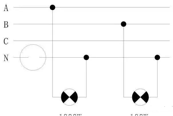 如图,假设灯1为1000瓦,灯2为100瓦,分别接在电源的A项和B项,在正常的情况下灯1与灯2都能正常照明。