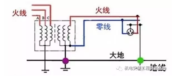 用电设备的外壳单独接地,与N线无关。这种接地叫做保护接地。