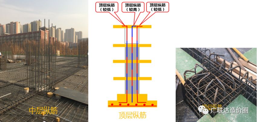 1层较高纵筋长度:中层较低纵筋长度- 中层纵筋接头错开长度+上层纵筋接头错开长度