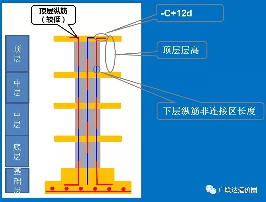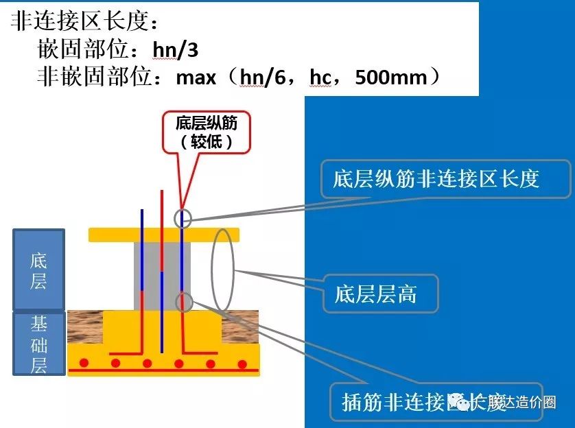 底层较低纵筋长度:底层层高-插筋非连接区长度+底层纵筋非连接区长度