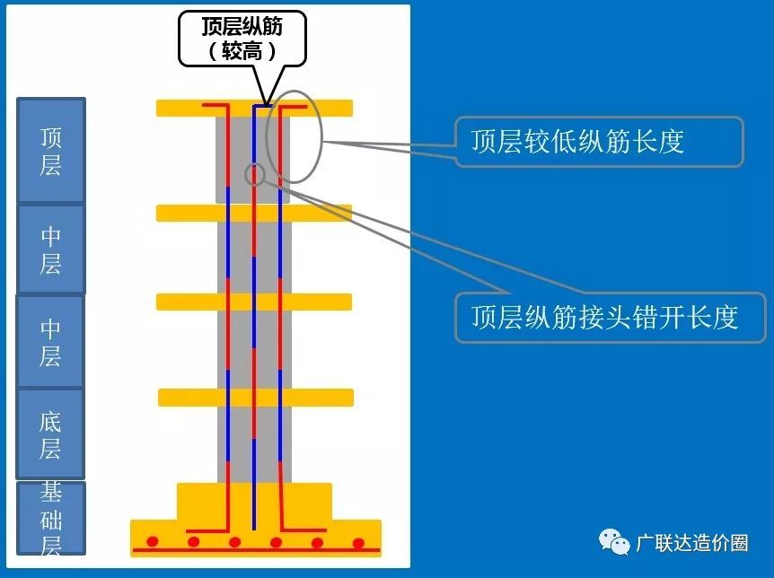 底层较高纵筋长度:底层较低纵筋长度-底层纵筋接头错开长度+上层纵筋接头错开长度