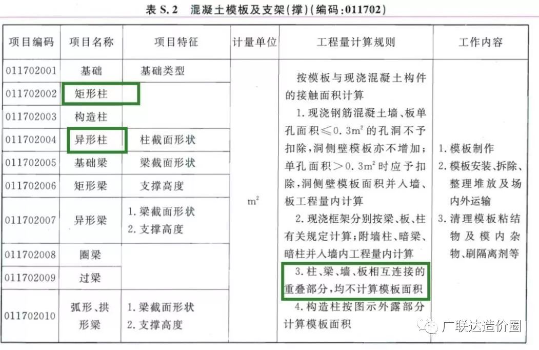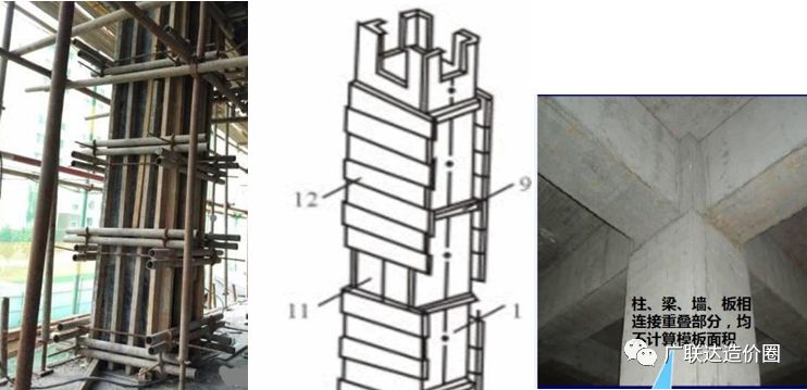 柱子模板算量要点:柱子周长*柱子高-柱梁连接的重叠部分