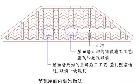 斜屋面倒置式防水、保温、细石混凝土、盖瓦应按图施工,保证各工序的施工质量,减少屋面渗漏隐患