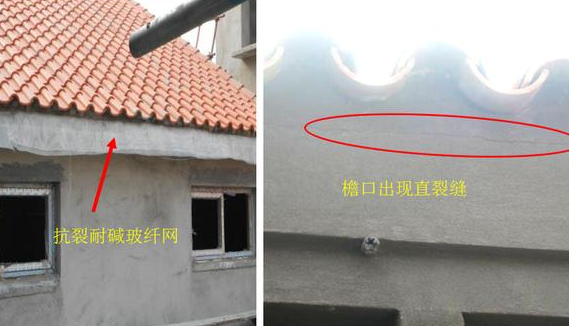 檐口处封口灰要密实,为防檐口出现直裂缝,檐口施工时需挂抗裂耐碱玻纤网。