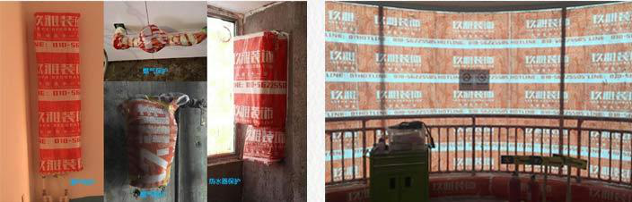 同理,将暖气、水表、燃气表、燃气炉及室内所有窗户都用专业保护膜保护起来。