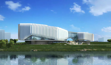 内江大剧院,位于四川省内江市谢家河片区沱江一段,西临清溪路,北临紫霞街。建筑根植于内江的穹隆山水, 丘陵坝子,以琴、台为构思理念,因地制宜的整理出多层次的文化平台,建筑宛若一架洁白的钢琴置于其上。风琴般优雅的表皮,传递出音乐的节奏韵味,更有仙子们舞裙摆褶的艳美。