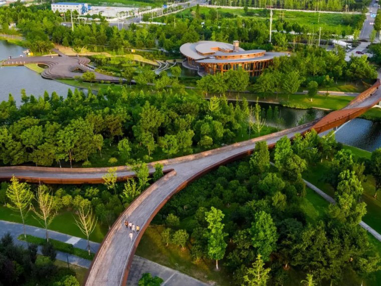 它要体现在规划布局、功能分区、景点营造等不同环节。因地制宜在公园功能和造景上,要遵循造景以自然美的特点,功能以平衡城市生态环境、以人为本的宗旨。