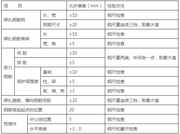 表6 钢筋安装位置的允许偏差和检验方法