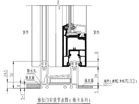 2.4、进出位:进出位的控制在满足建筑设计要求的前提下设置时应避免底部形成反坎同时应保证固定点应与结构可靠连接。