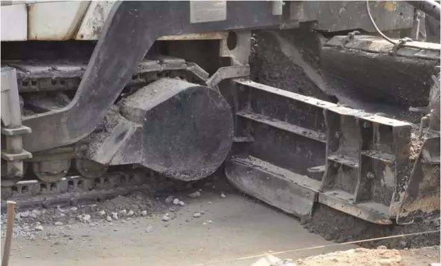 b.基层摊铺时要求先摊路肩,再铺基层,因缺少民工和挖掘机,不培路肩,照铺底基层不误;