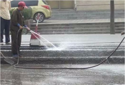 b.同时,运输车辆在指定入口进入摊铺现场时,施工单位必须安排专人用水枪对运输车辆的车轮进行清洗,防止对新铺面层的污染。