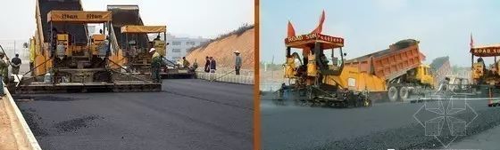 (6)主线采用单幅全宽一次摊铺,两台摊铺机前后成梯队式作业,摊铺机必须是进口机型(德国ABG423以上型号),两台机型必须一致,性能相近。以保证摊铺质量均匀一致,同时,每台摊铺机拼装宽度不得超过6米,两台摊铺机接缝不得在车道轮迹带上,上下层搭接位置要错开20cm以上。